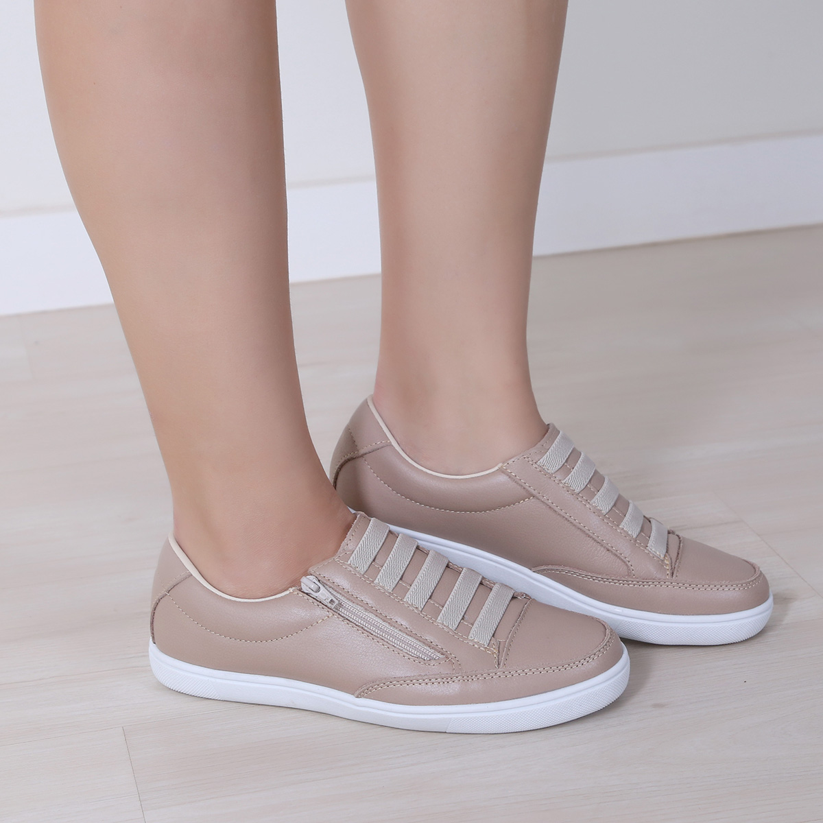 Tênis Feminino Nude em Couro Leve e Confortável com zíper